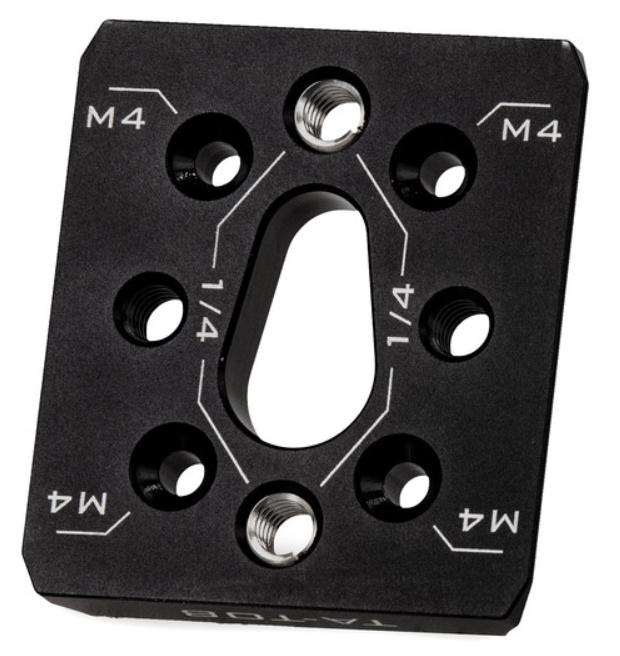 Tilta TA-T08-QRBP1-B pridáva štandardný rýchloupínací systém Manfrotto na spodnú časť fotoaparátu (alebo akéhokoľvek rámu Tilta KOMODO) pomocou viacerých skrutiek 1/4"-20 a 3/8"-16 s polohovacími kolíkmi pre pevné uchytenie bez vôľy. Doska zachováva perfektnú rovnováhu a nízky profil, pričom umožňuje okamžitú kompatibilitu s hlavami Manfrotto 501PL, 504PLONG, 509PLONG, MVH500/MVH502, hlavami Nitrotech a väčšinou systémov QR iných výrobcov v štýle Manfrotto. S matnou čiernou povrchovou úpravou, ktorá ladí s rámami Tilta KOMODO, je to najrýchlejší spôsob, ako integrovať malú 6K filmovú kameru do existujúcich ekosystémov statívov Manfrotto.