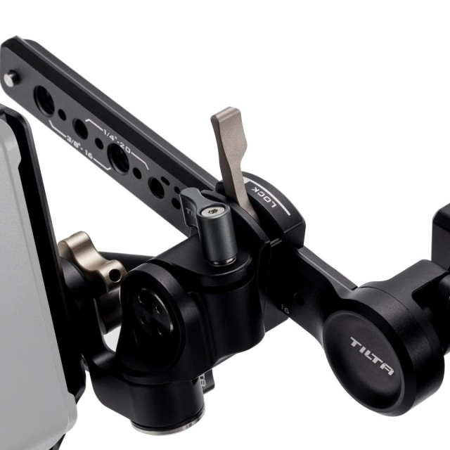 Otočný držiak EVF sa pripája k hornému držadlu pomocou 15 mm tyče a je vybavený tlmenou naklápacou osou pre presné a ergonomické nastavenie EVF.
