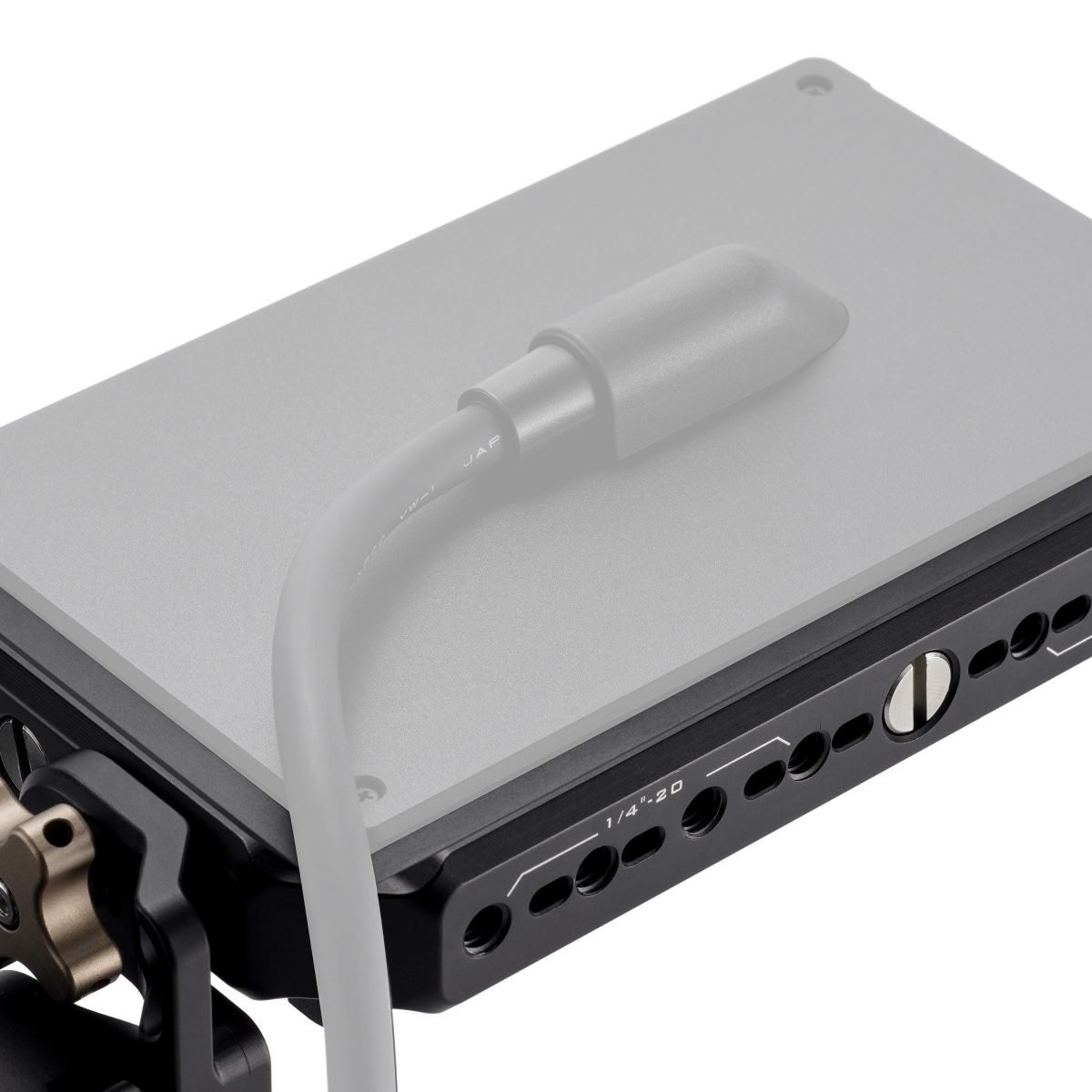Pre väčšiu flexibilitu montáže má tento L-držiak monitora viacero závitov 1/4″-20 a NATO lištu na základni.