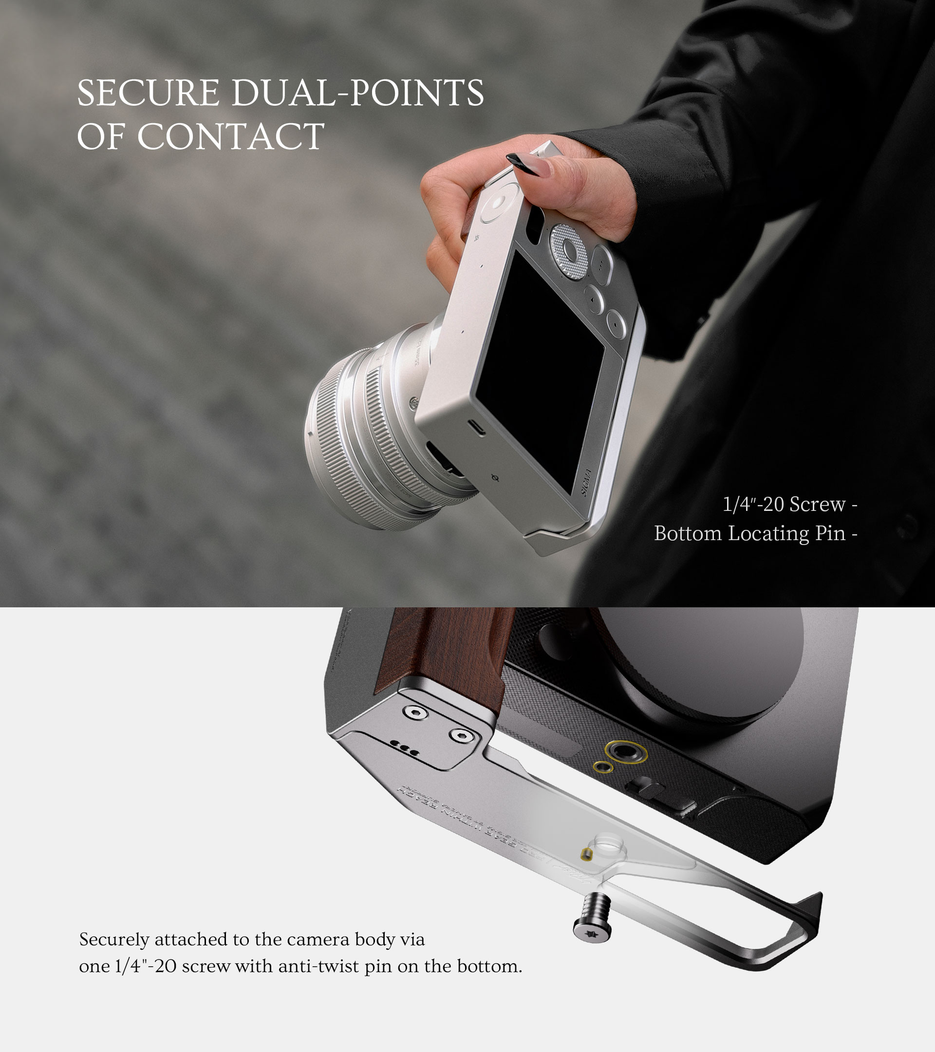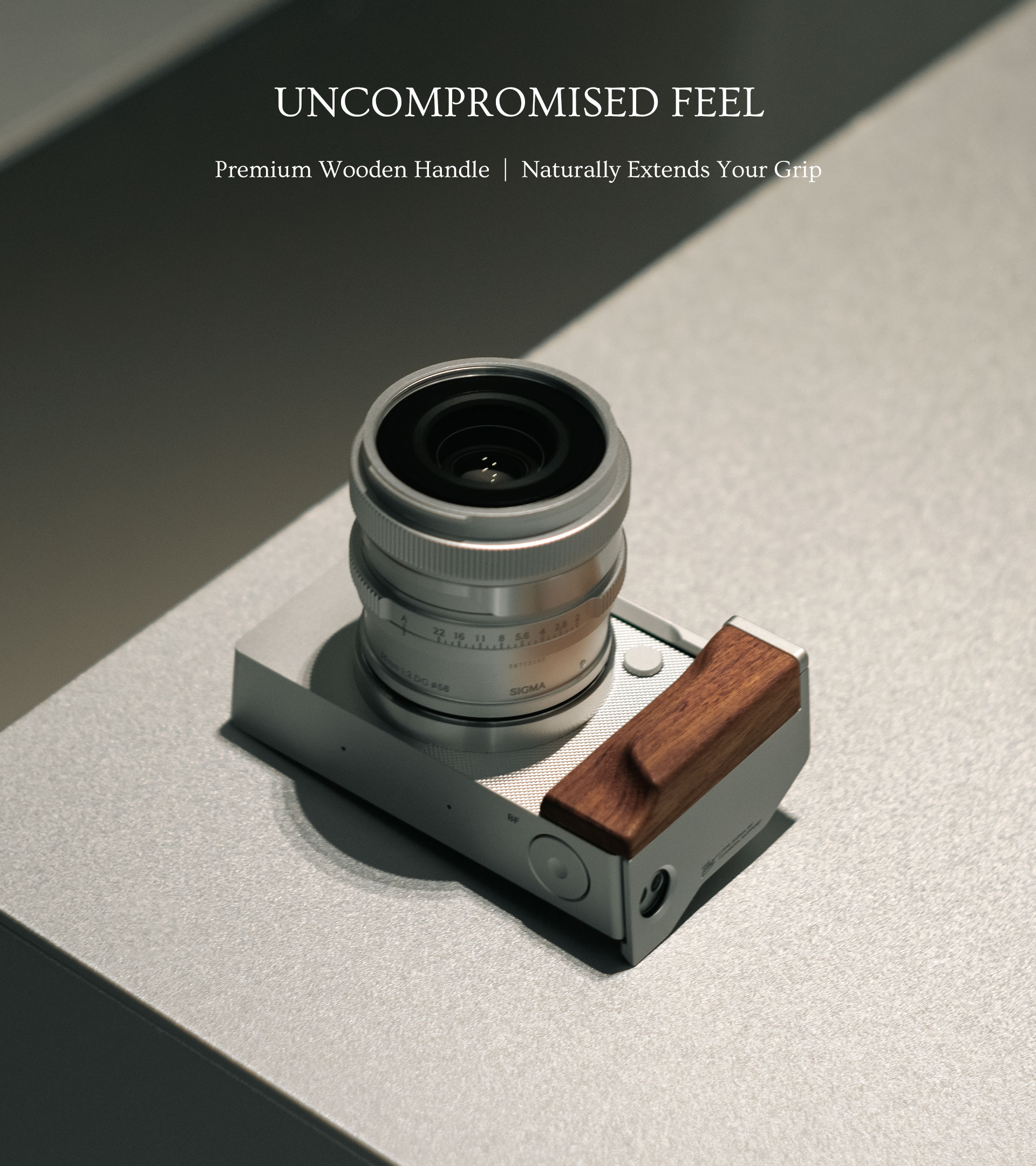 Predstavujeme montážnu základnú dosku s drevenou rukoväťou pre Sigma BF. Základom tohto príslušenstva v tvare L-bracketu je drevená rukoväť vyrobená z orechového dreva. Táto rukoväť poskytuje pohodlnejší spôsob ovládania a manipulácie s fotoaparátom, pričom zostáva kompaktná a vhodná na cestovanie.