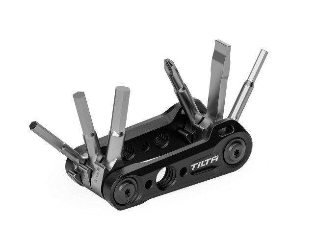 Multifunkčná minisúprava náradia Tilta je dokonalé kompaktné multifunkčné náradie pre klietky na fotoaparáty a podporné systémy. Nástroj obsahuje šesť univerzálnych nástrojov, ako sú imbusové kľúče a skrutkovacie hlavy na montáž, demontáž a každodenné používanie zariadení. Táto súprava náradia je skonštruovaná s rámom z hliníkovej zliatiny a obsahuje nástroje zo zliatiny ocele, čo zaručuje trvanlivosť a odolnosť proti korózii.
