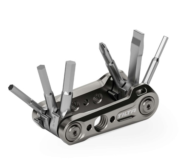 Multifunkčná minisúprava náradia Tilta je dokonalé kompaktné multifunkčné náradie pre klietky na fotoaparáty a podporné systémy. Nástroj obsahuje šesť univerzálnych nástrojov, ako sú imbusové kľúče a skrutkovacie hlavy na montáž, demontáž a každodenné používanie zariadení. Táto súprava náradia je skonštruovaná s rámom z hliníkovej zliatiny a obsahuje nástroje zo zliatiny ocele, čo zaručuje trvanlivosť a odolnosť proti korózii.