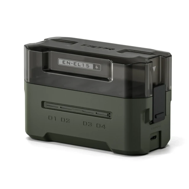 Táto kompaktná nabíjacia stanica je navrhnutá tak, aby podporovala batérie EN-EL15C od spoločnosti Nikon a iných výrobcov, a ponúka štyri sloty na jednoduché nabíjanie a pohodlné skladovanie. Je vybavená rýchlym nabíjaním PD s výkonom 45 W a poskytuje o pôsobivých 68 % vyššiu rýchlosť nabíjania ako štandardná jednoduchá nabíjačka, vďaka čomu sú vaše batérie pripravené na akciu už za 3 hodiny.