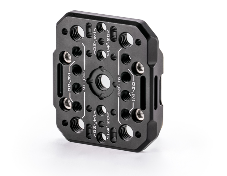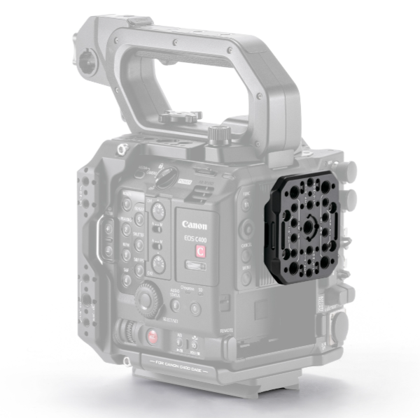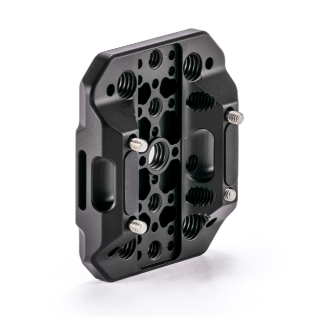 Táto univerzálna zadná doska rozširuje možnosti upevnenia fotoaparátu Canon C400 tým najjednoduchším možným spôsobom. Je vyrobená z hliníkovej zliatiny s nerezovým hardvérom a povrchovou úpravou v matnej čiernej farbe. Bezpečne sa pripája k natívnym zadným závitom fotoaparátu a ponúka mriežku závitov s lokalizačnými kolíkmi podľa štandardu ARRI (1/4"-20 a 3/8"-16) pre pevné upevnenie príslušenstva. Integrované otvory na popruhy umožňujú bezpečné upevnenie mini batériových dosiek (napríklad od spoločnosti Tilta), držiakov SSD alebo vysielačov pomocou bungee alebo suchého zipsu bez pridania objemu. S hmotnosťou iba 0,5 lb pridáva minimálnu váhu a zároveň výrazne zvyšuje funkčnosť – je ideálna pre dokumentárne zábery a gimbalové zostavy, kde by bola plná klietka nadbytočná, ale dodatočný výkon alebo príslušenstvo sú nevyhnutné.