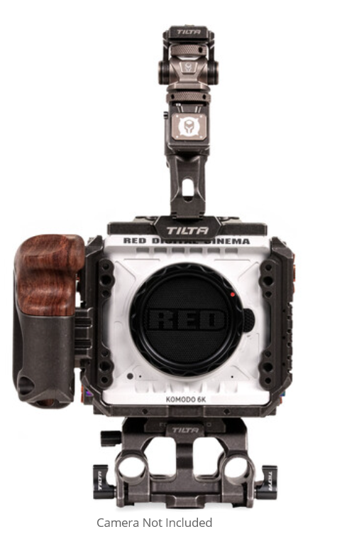 Súprava Tilta TA-T08-EAB RED KOMODO Kit E (Tactical Gray, Gold Mount) je komplexná súprava pripravená na použitie v kinematografii, navrhnutá s cieľom optimalizovať manipuláciu, rozšíriť možnosti upevnenia a zlepšiť flexibilitu napájania kamery RED KOMODO. Táto robustná sada obsahuje kompletný kamerový rám Tilta, ktorý poskytuje viacero montážnych bodov 1/4"-20 a 3/8"-16, plus štyri rozety štandardu ARRI pre príslušenstvo a bočné rukoväte.