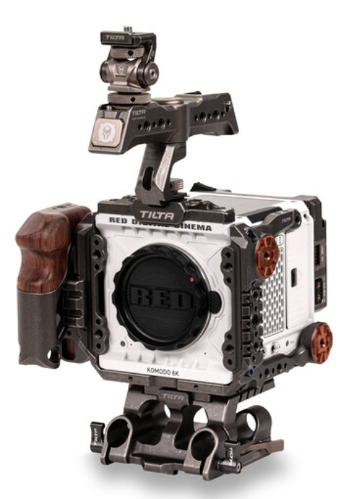 Kompletné profesionálne riešenie pre RED KOMODO, obsahujúce kompletný kamerový rám, napájací zdroj Gold Mount, drevenú bočnú rukoväť, otočnú hornú rukoväť, držiak monitora a 15 mm LWS základnú dosku – všetko v taktickej sivej farbe. Všetky komponenty sú navrhnuté s ohľadom na odolnosť a flexibilitu a sú vyrobené z vysoko kvalitného hliníka a ocele, čím podporujú pracovné postupy v štúdiu aj v teréne. Kit E poskytuje ideálny základ pre zostavenie ľahkej zostavy alebo plne vybaveného filmového zariadenia.