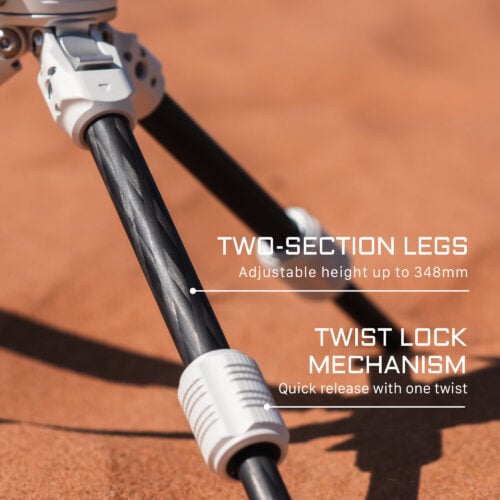 Stativ je vyrobený z viacvrstvového diamantového tkaného uhlíkového vlákna, je odolný a neuveriteľne ľahký, čo ho robí ideálnym na každodenné nosenie.
