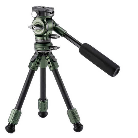Hlava kompatibilná s typom Arca umožňuje otáčanie o 360° a naklápanie od +90° do -60°, s nezávislými zámkami otáčania a naklápania pre presné rámovanie. Rýchloupínací tanier, príslušenstvo so závitom 1/4"-20 s polohovacími kolíkmi a teleskopickou rukoväťou rozširujú všestrannosť pre montáž kĺbových ramien, mikrofónov, svetiel a telefónnych svoriek. VT03 s povrchovou úpravou v lesnej zelenej farbe ponúka štýl a odolnosť pre tvorcov, ktorí sú stále v pohybe.