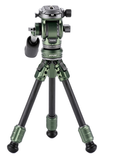 Stolová videohlava Tilta TT-VT03-FB-FG VT03 kombinuje nízku hmotnosť a prenosnosť s profesionálnou stabilitou. Jej telo z hliníka opracovaného na CNC strojoch a 10-vrstvové nohy z uhlíkových vlákien s diamantovým krížovým tkaním poskytujú pevnosť a nízku hmotnosť, vďaka čomu je ideálna pre bezzrkadlové fotoaparáty, digitálne zrkadlovky, vreckové kinematografické kamery a príslušenstvo. Stolný statív sa dá nastaviť na výšku od 6" do 13,7" a má tri polohy uhla nôh (22°, 55° a 82°) pre nerovné povrchy.