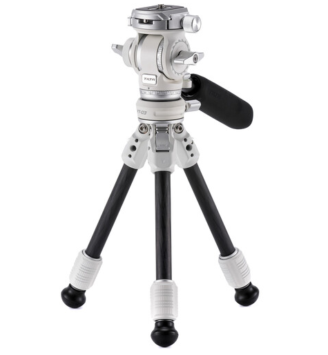 VT03 je navrhnutý pre všestranné použitie, má pracovný rozsah výšky od 6 do 13,7 palca a zloží sa na veľkosť len 11,1 palca, čo ho robí ideálnym pre cestovanie a kompaktné fotografické prostredia. Dvojdielne nohy využívajú mechanizmus s otočným zámkom a podporujú tri nastaviteľné uhly nôh (22°, 55° a 82°), čo umožňuje stabilné nastavenie na nerovných povrchoch. Plynulá hlava podporuje plynulé otáčanie o 360° a naklápanie od +90° do -60° a obsahuje rýchloupínací tanier typu Arca pre rýchle upevnenie fotoaparátu.