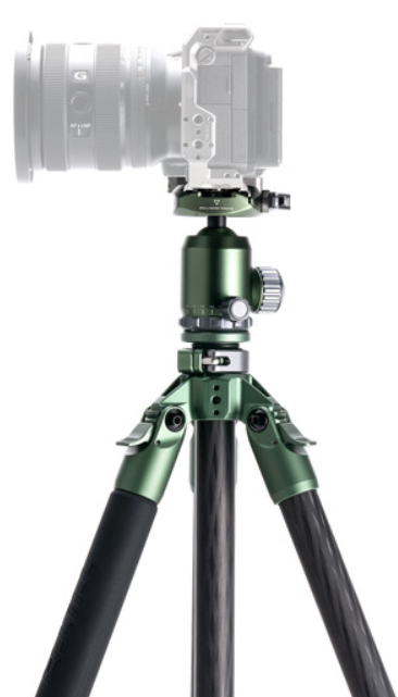 Súčasťou balenia je guľová hlava BT-05 s rýchloupínacím systémom typu Arca a sekundárnym bezpečnostným zámkom, ktorý zaisťuje rýchle a bezpečné upevnenie fotoaparátu. Panoramatická základňa s rozsahom 360° a stupňovými značkami umožňuje presné rámovanie, zatiaľ čo nezávislé zámky pre otáčanie a guľu ponúkajú plnú kontrolu. Ďalšie vylepšenia, ako je vodováha, 90° vertikálny zárez a tlmenie, zvyšujú použiteľnosť v rôznych prostrediach fotografovania.