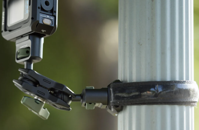 Vďaka natívnemu upevňovaciemu bodu 3/8"-16 a priloženému adaptéru pre príslušenstvo 1/4"-20 je vhodný pre akčné kamery, smartfóny, jednotky LiDAR, malé LED svetlá a ďalšie zariadenia. Jeho umiestnenie nad objektívom, ktoré je pripravené pre LiDAR, ho robí obzvlášť užitočným pre moderné automatické zaostrovanie a mapovacie pracovné postupy. Vďaka svojej robustnej konštrukcii a kompaktnej veľkosti poskytuje univerzálny montážny popruh flexibilné upevnenie na cestách pre akúkoľvek kamerovú súpravu.