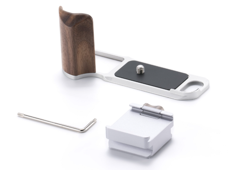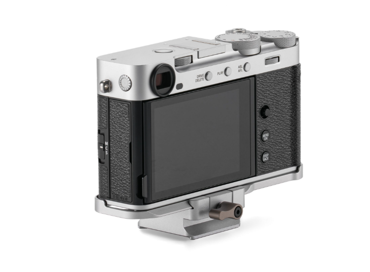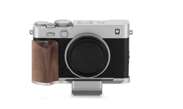 Tilta TA-T91-A-S Vintage Camera Cage Base Kit je ľahký L-držiak zo strieborného hliníka a orechového dreva s ergonomickou drevenou rukoväťou, navrhnutý špeciálne pre fotoaparát Fujifilm X-E5. Ponúka zvýšený komfort pri držaní v ruke a kompatibilitu s rýchloupínacím systémom Arca-Swiss pre hladké upevnenie na gimbaly a statívy, pričom zachováva kompaktný retro vzhľad fotoaparátu.