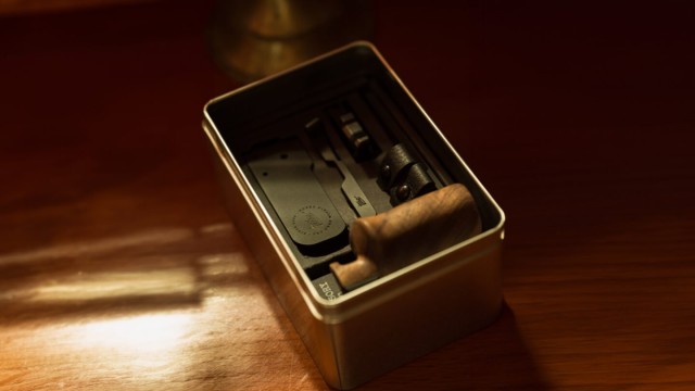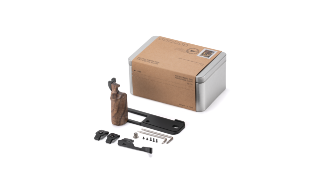 Základom tejto súpravy je držiak v tvare písmena L s drevenou rukoväťou vyrobenou z orechového dreva, ktorá poskytuje pohodlnejší spôsob ovládania a manipulácie s fotoaparátom.