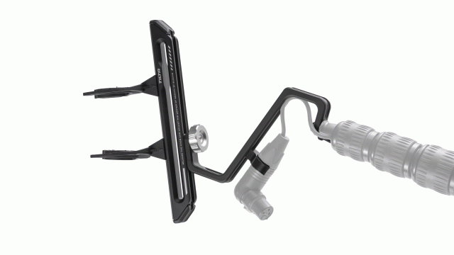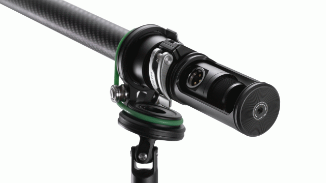 Najdôležitejšou súčasťou konštrukcie je prevádzkový držiak, ktorý sa pripevňuje na zadný koniec tyče výložníka a umožňuje jednoduché nastavenie smeru mikrofónu.