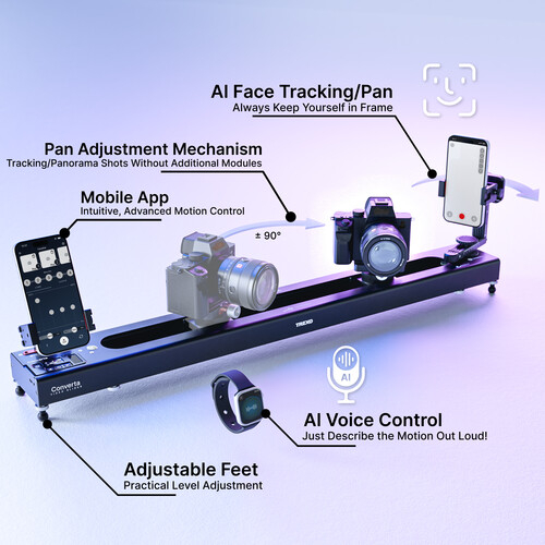 Zlepšite svoj pracovný postup pri natáčaní filmov pomocou Trexo Converta C400 Essential, motorizovaného posúvača kamery s bohatými funkciami, ktorý je určený pre tvorcov vyžadujúcich plynulé a inteligentné ovládanie pohybu. Tento slider s dĺžkou 25,6" a vzdialenosťou pohybu 15,7" je vybavený funkciou motorizovaného otáčania o 90°, 360° otočným stolíkom a automatickým sledovaním tváre s podporou umelej inteligencie, ktoré umožňuje plynulé sledovanie objektov počas natáčania.