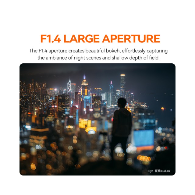 S uhlom záberu 45° ponúka 35 mm ohnisková vzdialenosť prirodzenú perspektívu, ktorá je ideálna pre pouličnú, portrétnu a produktovú fotografiu. Rýchla clona f/1,4 poskytuje vynikajúci výkon pri slabom osvetlení a bohatý bokeh. Tento kompaktný objektív, skonštruovaný zo 7 prvkov v 6 skupinách, si zachováva optickú ostrosť a zároveň poskytuje používateľom úplnú manuálnu kontrolu nad zaostrovaním a expozíciou.
