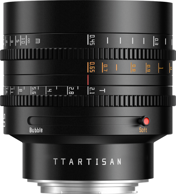 TTArtisan FF 50 mm T2.1 RF – prvý objektív na svete s dvojitým režimom bokeh Cine (Canon RF): Prepínanie jedným kliknutím medzi snovým „bublinkovým“ a krémovo jemným bokehom, jasný T2.1 full-frame, 11-lamelová clona, 320° rozsah zaostrenia (režim Soft), 0,8 Mod cine ozubené kolesá, celokovová konštrukcia odolná voči poveternostným vplyvom, 82 mm filter.