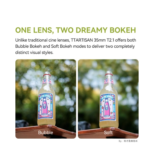 Na rozdiel od tradičných filmových objektívov, TTARTISAN 35 mm T2.1 ponúka režimy Bubble Bokeh a Soft Bokeh, ktoré poskytujú dva úplne odlišné vizuálne štýly.