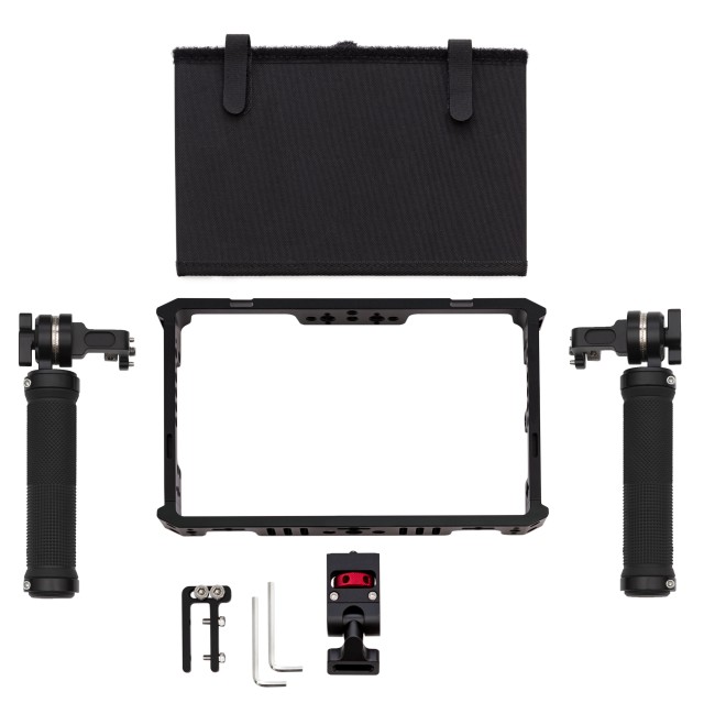 Hliníková klietka pre 7" monitory TVLogic F-7H/M2/F-7HS vrátane dvojice držadiel (rozeta ARRI) a slnečnej clony. Klietka ponúka aj niekoľko závitov 1/4"-20 a 3/8"-16 pre ďalšie príslušenstvo, priechodky na inštaláciu pútka/pútka a držiaka kábla HDMI...