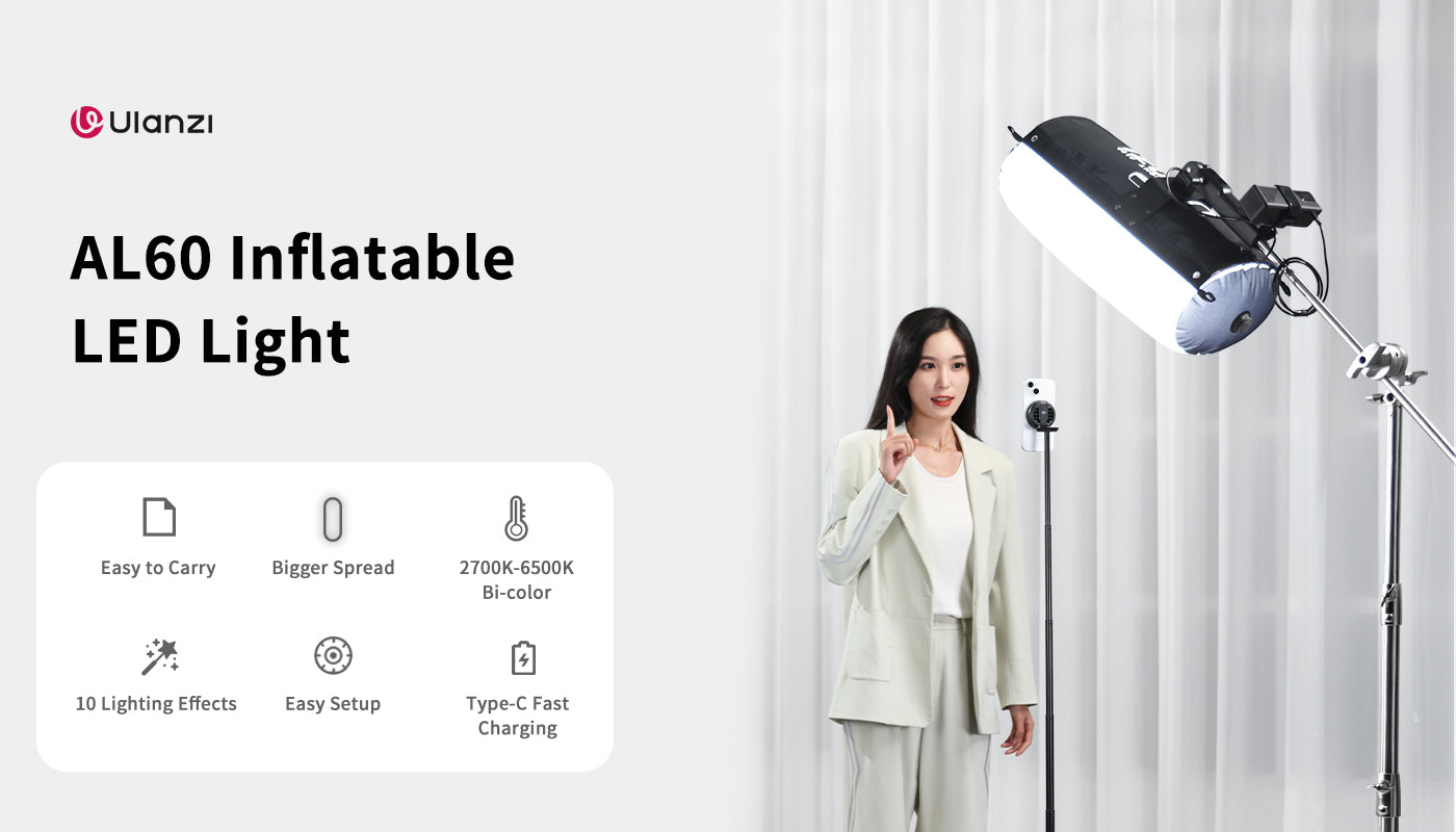 Toto svetlo je pripravené na použitie už za 20 sekúnd vďaka automatickému nafukovaciemu čerpadlu. Nie je potrebné ručné pumpovanie ani fúkanie – stačí stlačiť tlačidlo a rýchlo a bez problémov je pripravené na použitie. Toto nafukovacie LED svetlo je navrhnuté pre pohodlie, dá sa ľahko zložiť, čo z neho robí ideálneho spoločníka pre fotografovanie v exteriéri. Vylepšené tak, aby poskytovalo mäkké osvetlenie v kinematografickej kvalite, ktoré vylepšuje portréty a dodáva im prirodzenú krásu a žiarivosť.
