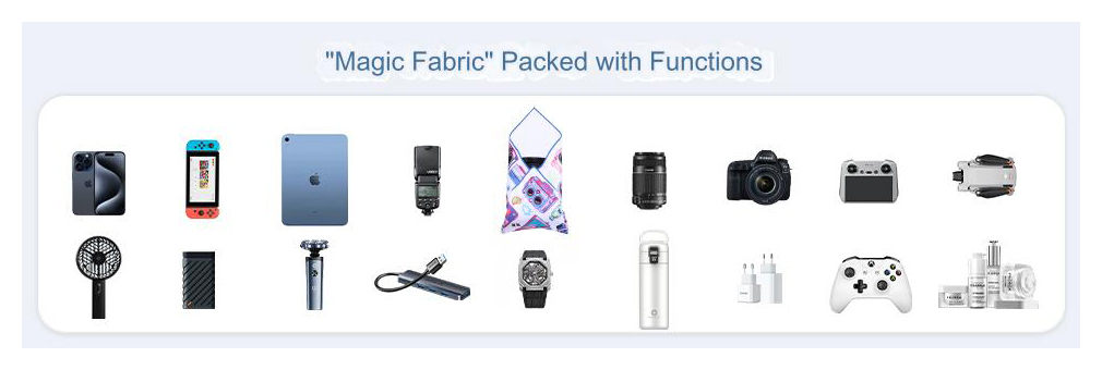 Obal na fotoaparát je vyrobený z polymérového materiálu a nano-mikrovlákna Velcro. Keď sa háčiková a slučková strana dotknú, okamžite sa pevne pripevnili. Môže byť absorbovaný ako mávnutím čarovného prútika, nerozpadne sa pri otrasoch a je recyklovateľný.