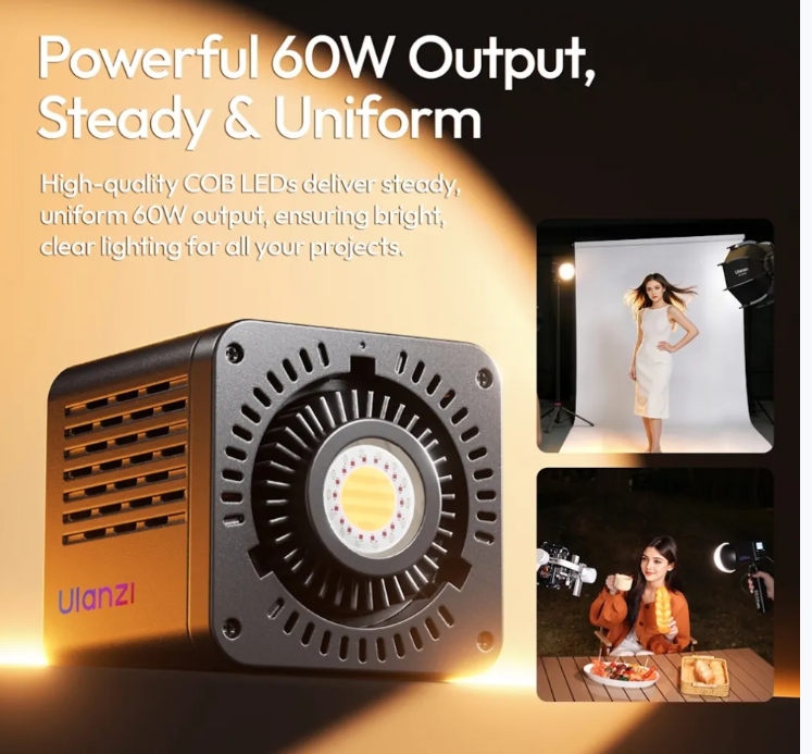 Videoosvetlenie Ulanzi C60RGB 60W RGB COB LED je kompaktné profesionálne osvetľovacie riešenie určené pre tvorcov. Vďaka plnému RGB spektru a nastaviteľnému bielemu/teplému svetlu, vstavanej batérii s kapacitou 3300 mAh, 20 režimom simulácie scén a kompatibilite s mini Bowensovým uchytením poskytuje výkonné a univerzálne osvetlenie pre portréty, vlogy, živé vysielanie a filmový obsah.