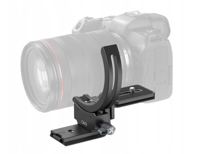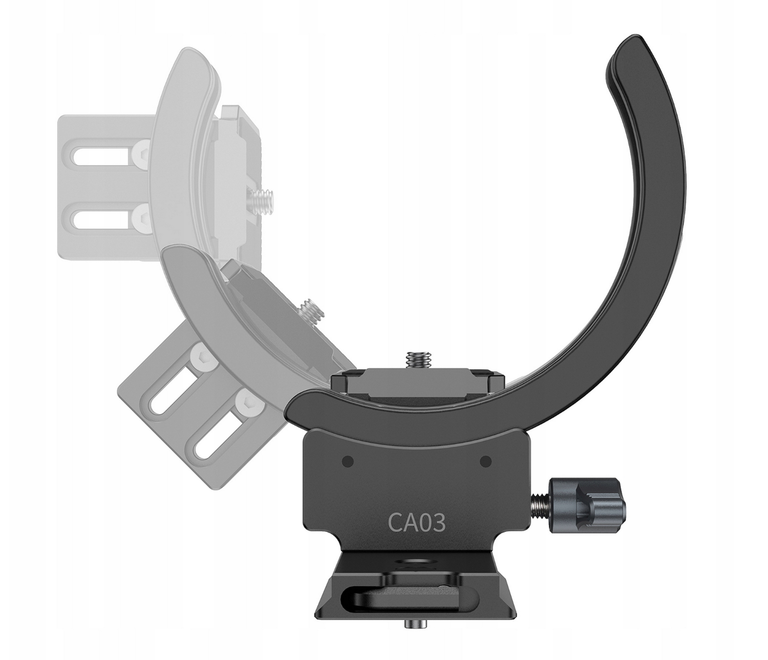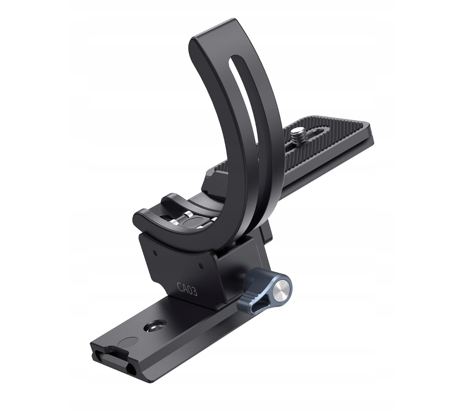 Nastaviteľná výška platformy umožňuje jemné doladenie pre rôzne konštrukcie objektívov, zatiaľ čo polkruhový dizajn objímky umožňuje inštaláciu bez nutnosti odstránenia objektívu z fotoaparátu. CA03 je vyrobený z odolného proti poškriabaniu a korózii hliníka a ocele a podporuje objektívy s hmotnosťou až 5 kg, pričom si zachováva ľahký a prenosný tvar.