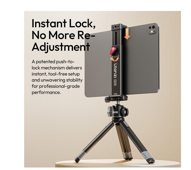 Držiak na tablet Ulanzi CA15 OneLock je profesionálne upevňovacie riešenie určené na bezpečné uchytenie tabletov s uhlopriečkou od 7,9" do 12,9". Je navrhnutý pre tvorcov, pedagógov, streamerov a profesionálov a poskytuje stabilnú a prispôsobivú platformu na používanie tabletov so statívmi, stojanmi a kamerovými zostavami.