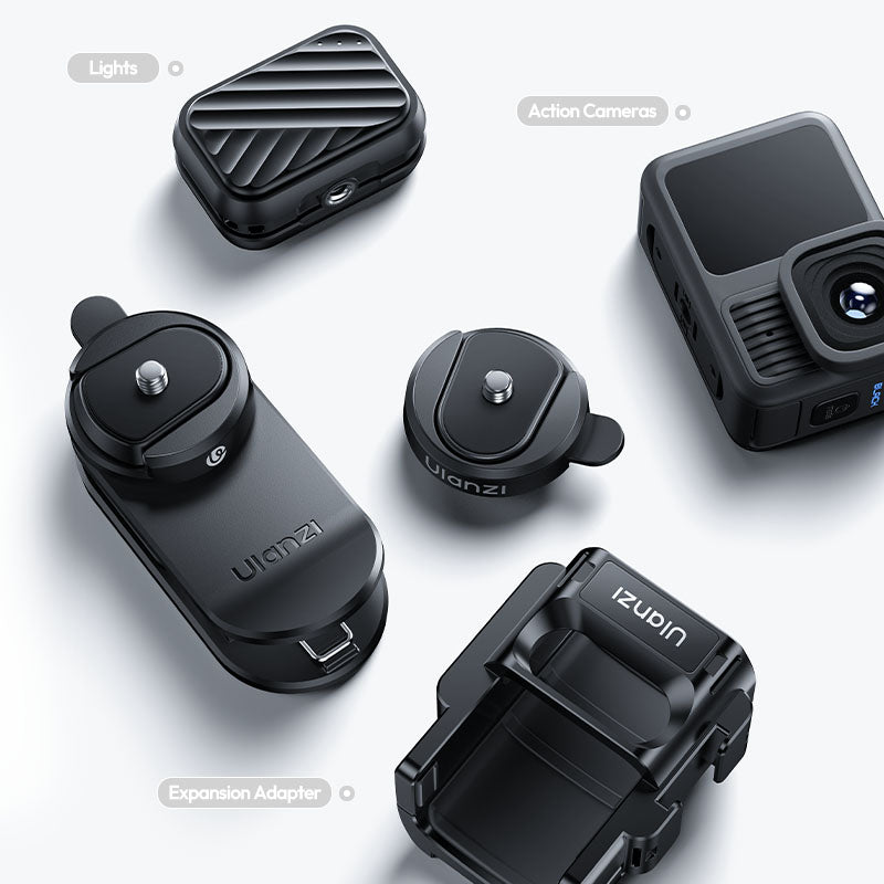 Ulanzi CK02 CKa Quick Release Backpack Clip je dokonalé riešenie pre tvorcov, ktorí sú neustále v pohybe. Je navrhnutý s ohľadom na rýchlosť, bezpečnosť a univerzálnosť a disponuje magnetickým zadným panelom, protiskluzovou prackou a U-tvarovanou drážkou pre pevné uchytenie zariadenia. Vďaka rýchlemu uvoľneniu jednou rukou zefektívňuje vašu prácu – je ideálny pre vlogerov, turistov a mobilných filmárov. Je kompatibilný so zariadeniami so závitom 1/4", ako sú GoPro, DJI Osmo Pocket 3, Insta360 a kompaktné svetlá, podporuje hmotnosť až 500 g a otáča sa o 360° s pevnou 90° zarážkou pre dynamické uhly snímania.