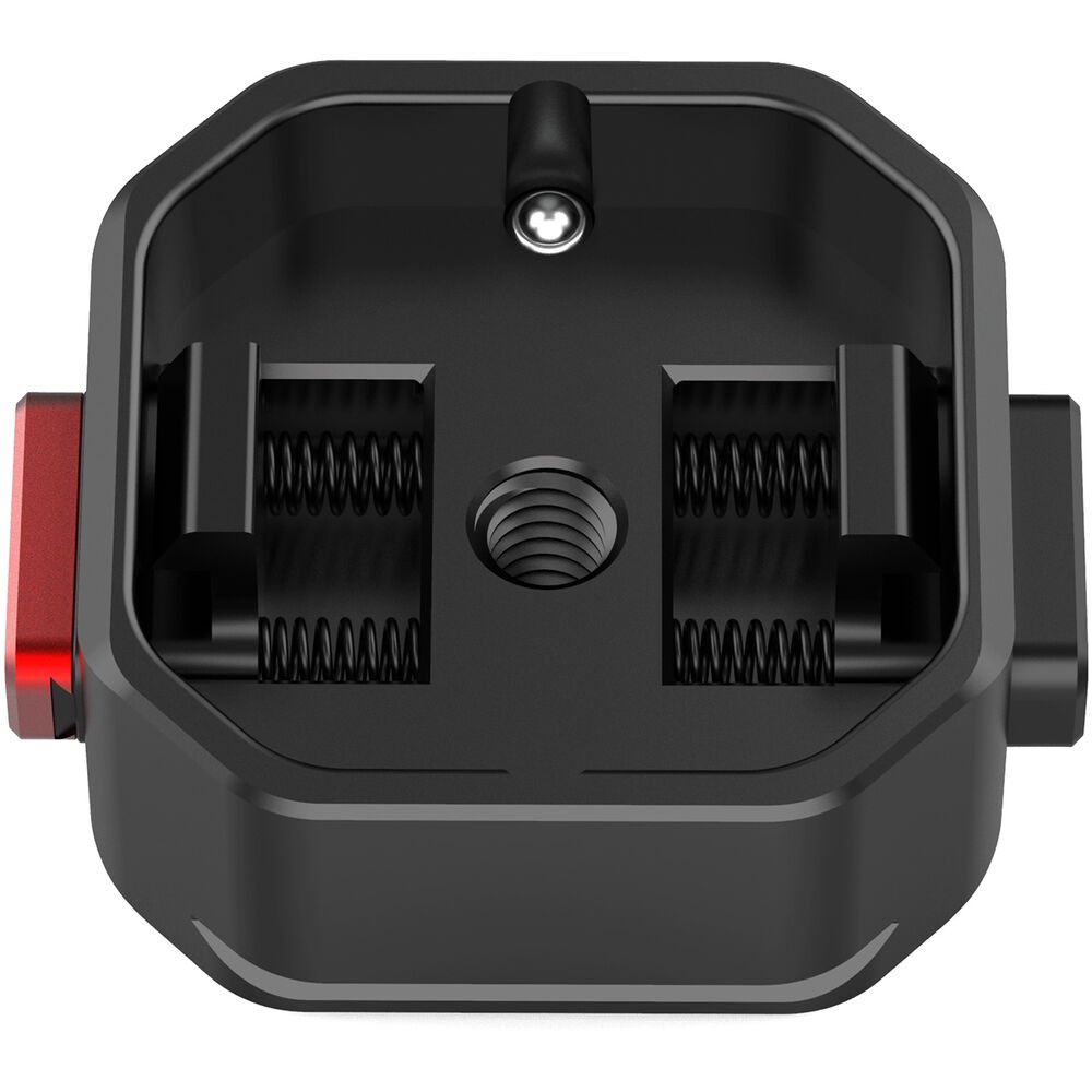 Základňa je vybavená tlačidlom na uvoľnenie dosky a posuvným zámkom pre bezpečné upevnenie a jednoduchú obsluhu. Jeho drážky typu Arca zabezpečujú kompatibilitu s širokou škálou statívových hláv a držiakov fotoaparátov. Okrem toho je základňa vybavená siedmimi 1/4"-20 závitovými úchytmi, ktoré umožňujú súčasné pripevnenie viacerých príslušenstiev, konzol alebo sekundárnych držiakov. Tento kompaktný, ľahký a robustný prijímač je ideálny pre profesionálne zostavy, ktoré vyžadujú pevnosť, flexibilitu a rýchlosť.