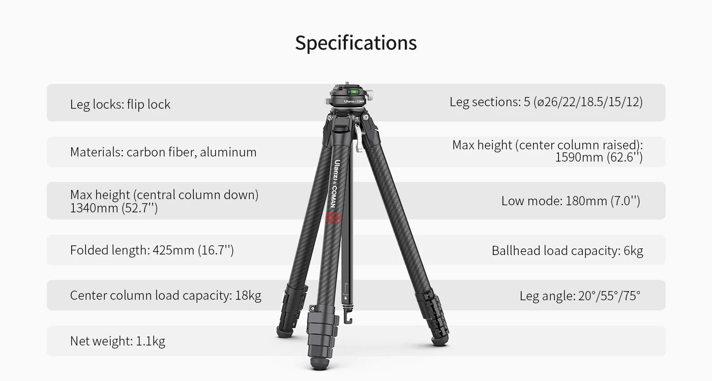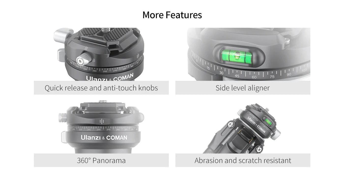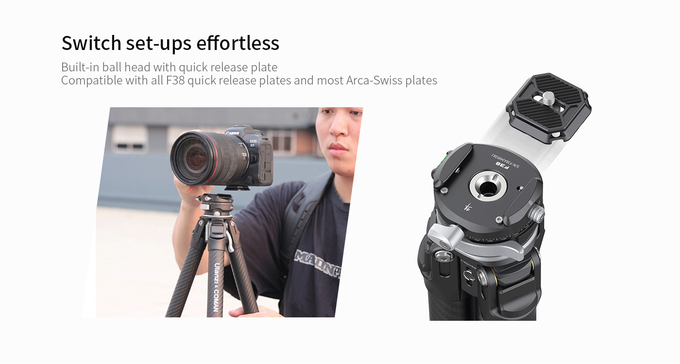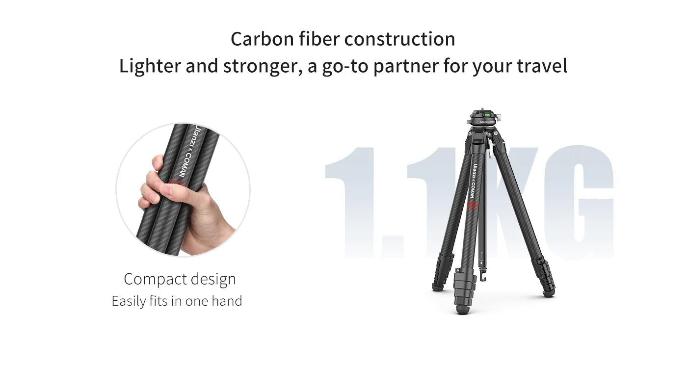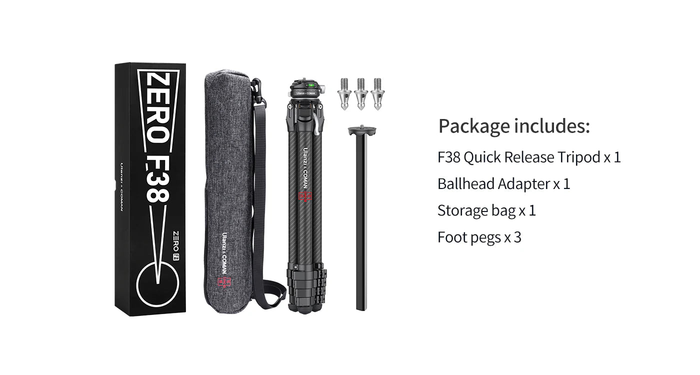 Cestovný statív Ulanzi Zero F38 s rýchloupínacím mechanizmom: Zachyťte úžasné zábery na cestách s týmto kompaktným a ľahkým (1,1 kg) cestovným statívom z uhlíkových vlákien. Vďaka vstavanej guľovej hlave a rýchloupínacej doske F38 môžete bez námahy prepínať medzi nastaveniami, zatiaľ čo priložený extra stredový stĺpik ponúka kompatibilitu s Arca-Swiss pre maximálnu flexibilitu. Fotografujte z rôznych uhlov vďaka nastaviteľným polohám nôh (20°/55°/75°) a odnímateľnému krátkemu stĺpiku pre zábery z nízkeho uhla. Statív Ulanzi Zero F38 je navrhnutý tak, aby vydržal, unesie až 18 kg a všetky jeho diely sú servisovateľné s doživotnou zárukou. Popustite uzdu svojej kreativite a zachyťte nezabudnuteľné okamihy, kdekoľvek sa nachádzate!