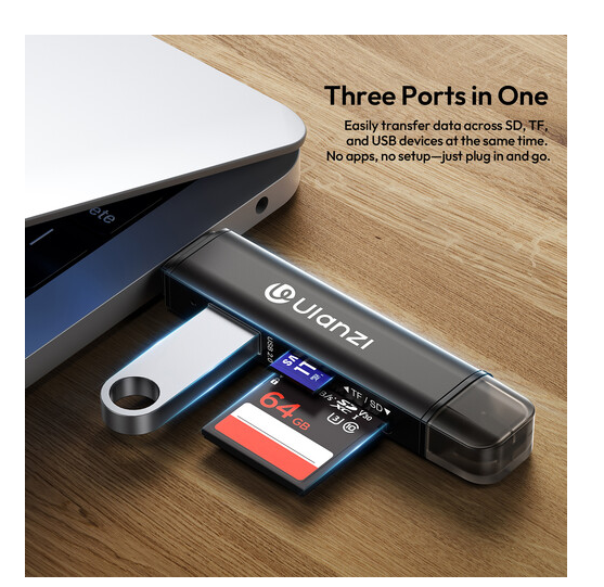 Funkcia 3 v 1: Podporuje pripojenia SDXC, microSDXC a USB-A 2.0, čo umožňuje rýchly prenos medzi rôznymi zariadeniami.