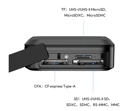 Puzdro na čítačku kariet Ulanzi C078GBB1 CRC10 3 v 1 kombinuje vysokorýchlostný prenos dát a bezpečné ukladanie médií v jednom kompaktnom dizajne. Podporuje karty CFexpress Type A, SD a microSD, je vybavené integrovaným káblom USB-C 3.2 Gen 2 s rýchlosťou 10 Gb/s, viacerými úložnými slotmi a odolným vonkajším povrchom z hliníkovej zliatiny pre efektívne odvádzanie tepla a spoľahlivý výkon na cestách.