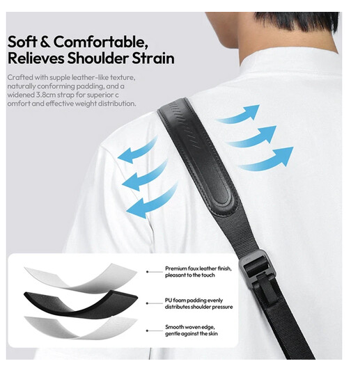 Noste svoj fotoaparát pohodlne a štýlovo s ramenným popruhom Ulanzi CSS1 U-Snap (farba Mercury Silver). Tento popruh, navrhnutý pre fotografov, ktorí hľadajú spoľahlivosť a jednoduché použitie, unesie až 60 kg fotografického vybavenia. Jeho nastaviteľná dĺžka 108–140 cm umožňuje rýchle utiahnutie alebo uvoľnenie jednou rukou, zatiaľ čo 3,8 cm široký popruh s prémiovým polstrovaním z umelej kože zaisťuje pohodlie počas dlhých fotografických sedení.
