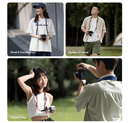 Jeho systém valcovitých konektorov zabraňujúcich zamotávaniu zabraňuje krúteniu a uzlovaniu počas pohybu, vďaka čomu je ideálny pre dynamické prostredia fotografovania, ako sú cestovanie, pouličná fotografia alebo reportáže z podujatí. Systém rýchleho nastavenia dĺžky umožňuje jednoduché prispôsobenie dĺžky v rozmedzí 100–130 cm, čím zabezpečuje pohodlné nosenie pre rôzne typy postáv a štýly nosenia.