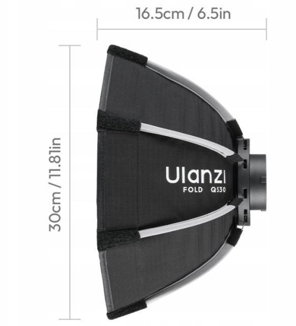 Softbox obsahuje mriežku typu honeycomb na zúženie svetelného lúča pre lepšie ovládateľné osvetlenie a difúzor na suchý zips, ktorý poskytuje prirodzené svetlo bez tieňov. Jeho strieborný odrazový vnútorný povrch maximalizuje účinnosť a kontrast, zatiaľ čo mechanizmus rýchleho uvoľnenia zaisťuje jednoduché pripevnenie a odstránenie. S hmotnosťou iba 0,3 kg a rozmermi po zložení 42 × 20 cm je model QS30 ideálny pre mobilné zostavy a fotografovanie v exteriéri.