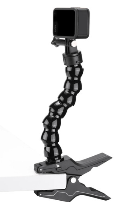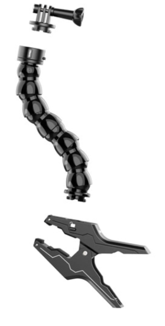 Ulanzi Go-Quick II funguje ako modulárne, flexibilné rameno s vysokým krútiacim momentom pre upevnenie akčnej kamery a príslušenstva, vybavené pružinovou C-svorkou s rozsahom čeľustí 5–50 mm a protišmykovými silikónovými podložkami (tvrdosť Shore A 60) pre bezpečné upevnenie na okraje, ako sú rámy monitorov alebo dosky stolov. 189 mm oceľový husí krk s práškovým náterom poskytuje plný 360° rozsah pohybu s pamäťou polohy (trenie 0,5–1 Nm) a pri vysunutí podporuje maximálnu výšku až 328 mm, zatiaľ čo integrovaný 3-bodový držiak využíva magnetické rýchloupínanie (neodým N35, 2 kg strihacia sila) kompatibilné so sériou GoPro Hero, DJI Osmo Action 5 Pro a Insta360 GO 3S bez adaptérov. Dvojité závity 1/4"-20 UNC (jeden na základni svorky, jeden na držiaku) umožňujú reťazové zapojenie ramien alebo pripevnenie LED svetiel/mikrofónov (celkové rozloženie zaťaženia 2 kg, 1,5 kg vertikálne). Je vyrobený z matnej čiernej práškovo lakovanej ocele (odolnej proti korózii, odolnej proti striekajúcej vode IP54) a ABS plastu (odolného proti nárazom 5 J), skladá sa na rozmery 200 × 70 × 45 mm pre uloženie v puzdre na 15" notebook, funguje v prostredí s teplotou od –10 °C do +60 °C a váži 210 g, čo ho robí prenosným. Ideálne pre zábery z nadhľadu, rameno sa zamyká pomocou integrovaného gombíka (krútiaci moment 0,8 Nm), aby sa zabránilo posunu pod zaťažením.