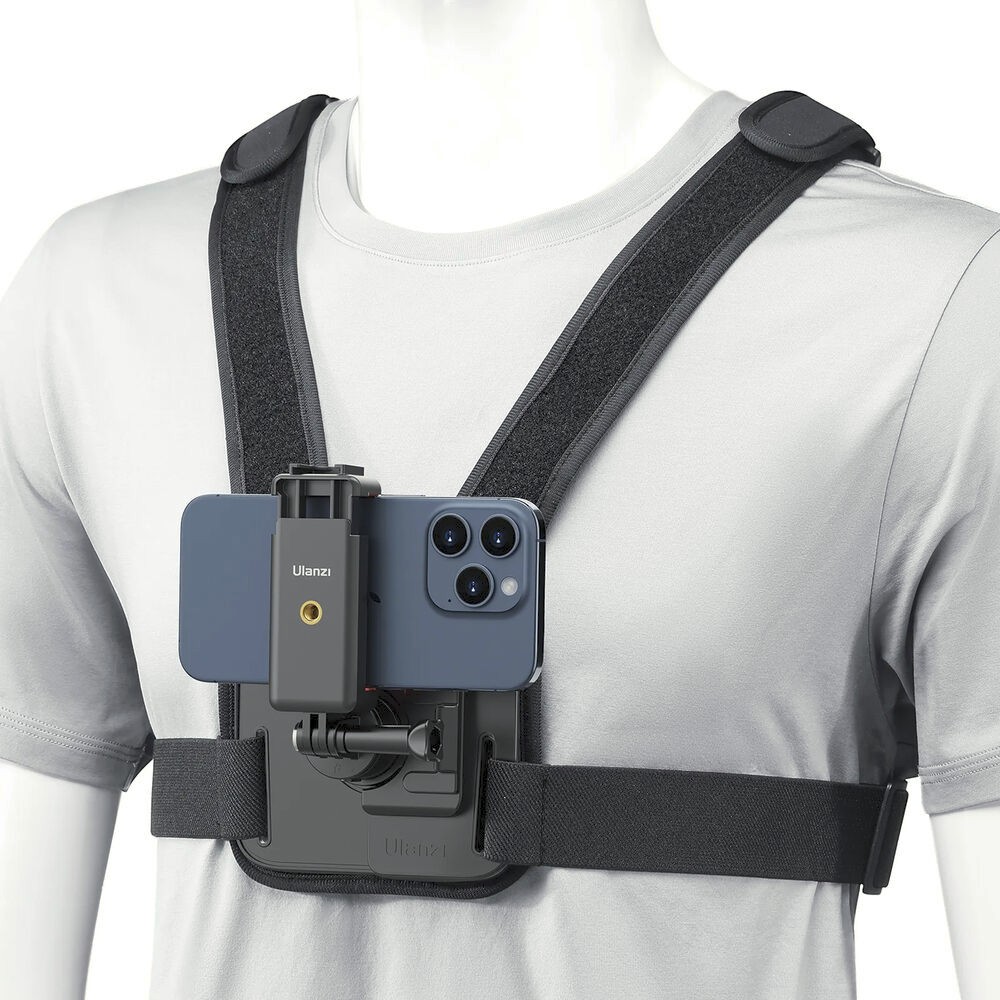 Magnetický hrudný popruh Ulanzi Go-Quick II umožňuje natáčanie z vlastnej perspektívy bez použitia rúk pomocou akčných kamier alebo smartfónov s šírkou až 3,54". Je nastaviteľný pre všetky veľkosti dospelých, má závitovú skrutku 1/4"-20, držiak na studený topánku, otočnosť o 360° a nakloniteľnosť o 180° pre univerzálne uhly snímania.