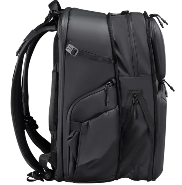 Batoh je vyrobený z prvotriedneho nepremokavého polyesterového vlákna a vylepšenej tvrdšej ochrany, čím ponúka vynikajúcu ochranu proti poveternostným vplyvom a zároveň poskytuje funkcie proti krádeži a strate. Ergonomický oblúkový chrbtový panel a nastaviteľné ramenné popruhy, hrudný popruh a bedrový pás zaisťujú pohodlie aj počas dlhých fotografovaní alebo cestovania. Pre väčšie pohodlie je taška vybavená dvojitými bočnými zipsmi pre rýchly prístup, vďaka ktorým sa dostanete k svojmu vybaveniu bez toho, aby ste museli celý batoh vyzliekať. Taška je tiež vybavená oddelenými priehradkami na suché a mokré veci, vďaka čomu môžete od seba oddeľovať citlivé vybavenie a vlhké predmety, a prispôsobiteľným systémom rozšírenia s pútkami a popruhmi pre jednoduché vyberanie vybavenia a možnosti nosenia. Viacnásobné dvojité držadlá vám poskytujú flexibilitu pri nosení batohu rôznymi spôsobmi, čo je ideálne pre rôzne cestovné a fotografické situácie.