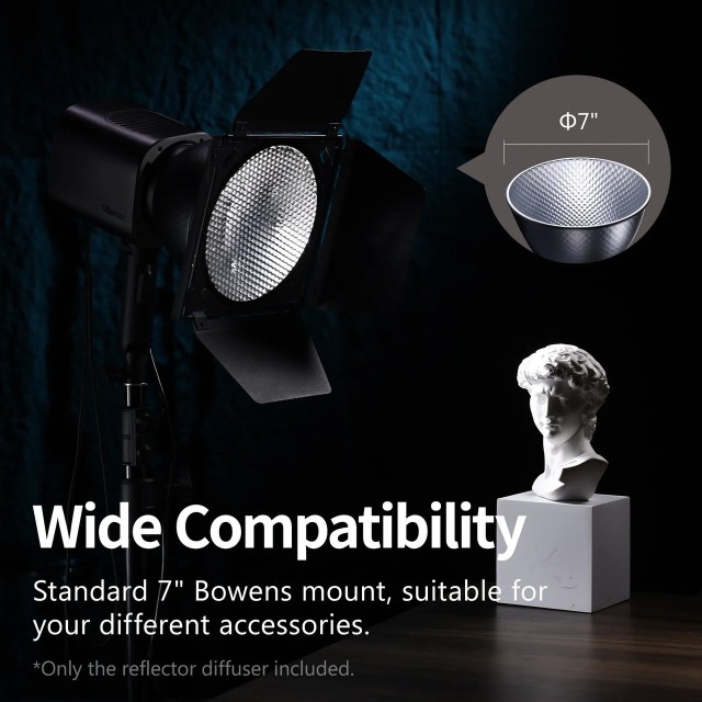 Ulanzi HT002 7" štandardný difúzor s uchytením Bowens je ľahký a odolný hliníkový reflektor určený pre svietidlá s uchytením Bowens. Jeho odrazová strieborná a biela vnútorná strana poskytuje rovnomerné, mäkké svetlo, vďaka čomu je ideálny pre fotografovanie, videografiu a fotografovanie na cestách.