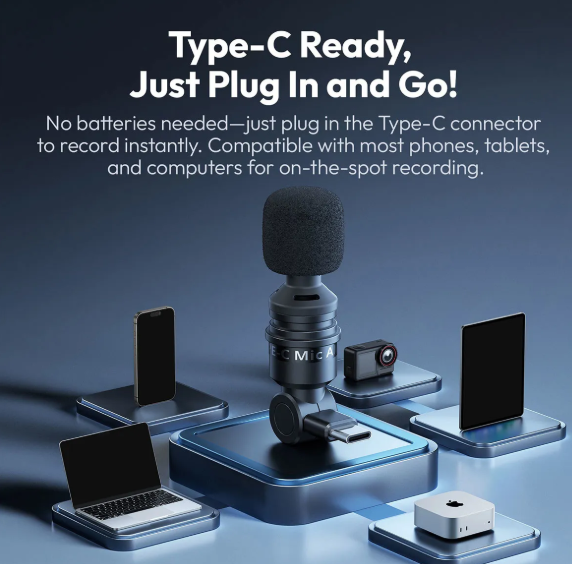 AM23 je vybavený rozhraním USB typu C typu plug-and-play, ktoré nevyžaduje batérie ani ovládače – stačí ho pripojiť a okamžite začať nahrávať. Jeho 180° nastaviteľná rotácia vám umožňuje umiestniť mikrofón presne tak, ako potrebujete, zatiaľ čo silikónový držiak tlmiaci nárazy a vetruodolná hubka minimalizujú vibrácie, šum vetra a popové zvuky pre stabilné nahrávky aj v náročných podmienkach.