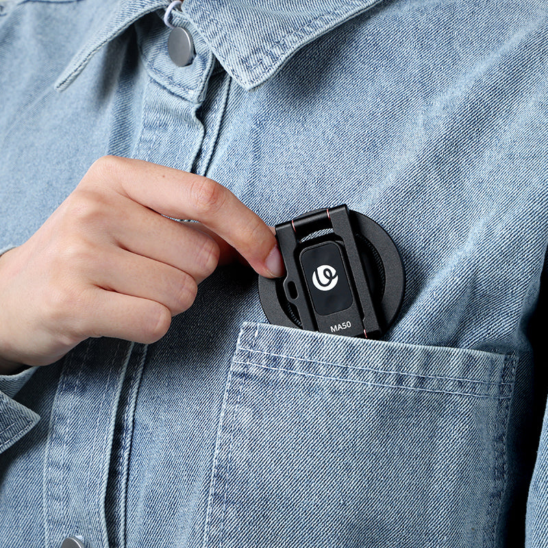 Tak tenký ako váš telefón. V zloženom stave má MA50 hrúbku len 12 mm, čo je približne rovnako ako smartfón, a ľahko sa vojde do vrecka. Univerzálne možnosti nosenia: Uchytenie na popruh batohu