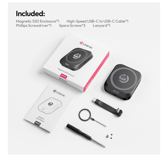 Magnetický SSD box Ulanzi MA55 je univerzálne vysokorýchlostné úložisko určené pre profesionálov a tvorcov obsahu. Podporuje SSD disky NVMe M.2 (až do 2 TB) a ponúka plynulé pripojenie prostredníctvom portov USB-C 3.2 Gen 2 a USB-C PD 3.0. Vďaka podpore nahrávania videa 4K ProRes, integrovanému chladiacemu ventilátoru a magnetickému upevneniu pre jednoduchú inštaláciu je tento kryt ideálny pre mobilné nahrávanie a vysokorýchlostný prenos dát.