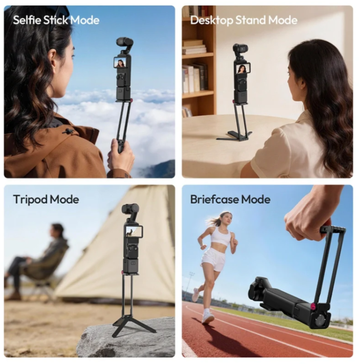 Vďaka integrovanej 1/4" skrutke s krídlovou hlavou je možné statív pripevniť bez poškriabania a zároveň zostanú nabíjacie porty voľné, takže môžete zariadenie nabíjať aj počas používania. Univerzálny dizajn statívu podporuje viacero režimov snímania: selfie tyč do ruky, stolný stojan, statív a dokonca aj snímanie zhora v štýle mantis.