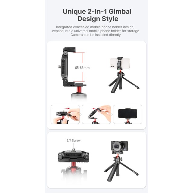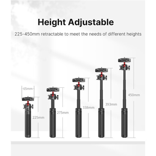 Teleskopický mini statív Ulanzi MT-41 4-Section Telescopic Mini Tripod V2 je určený pre tvorcov, ktorí potrebujú univerzálnosť v kompaktnom prevedení. Tento stolný statív je vybavený teleskopickým stredovým stĺpikom, ktorý sa dá vysunúť až na 45 cm, vďaka čomu funguje ako stabilný mini statív aj ako praktická ručná selfie tyč. Integrovaná guľová hlava umožňuje plynulé manuálne nastavenie s vertikálnym naklonením až 90°, čo umožňuje jednoduché prepínanie medzi horizontálnym a vertikálnym snímaním.