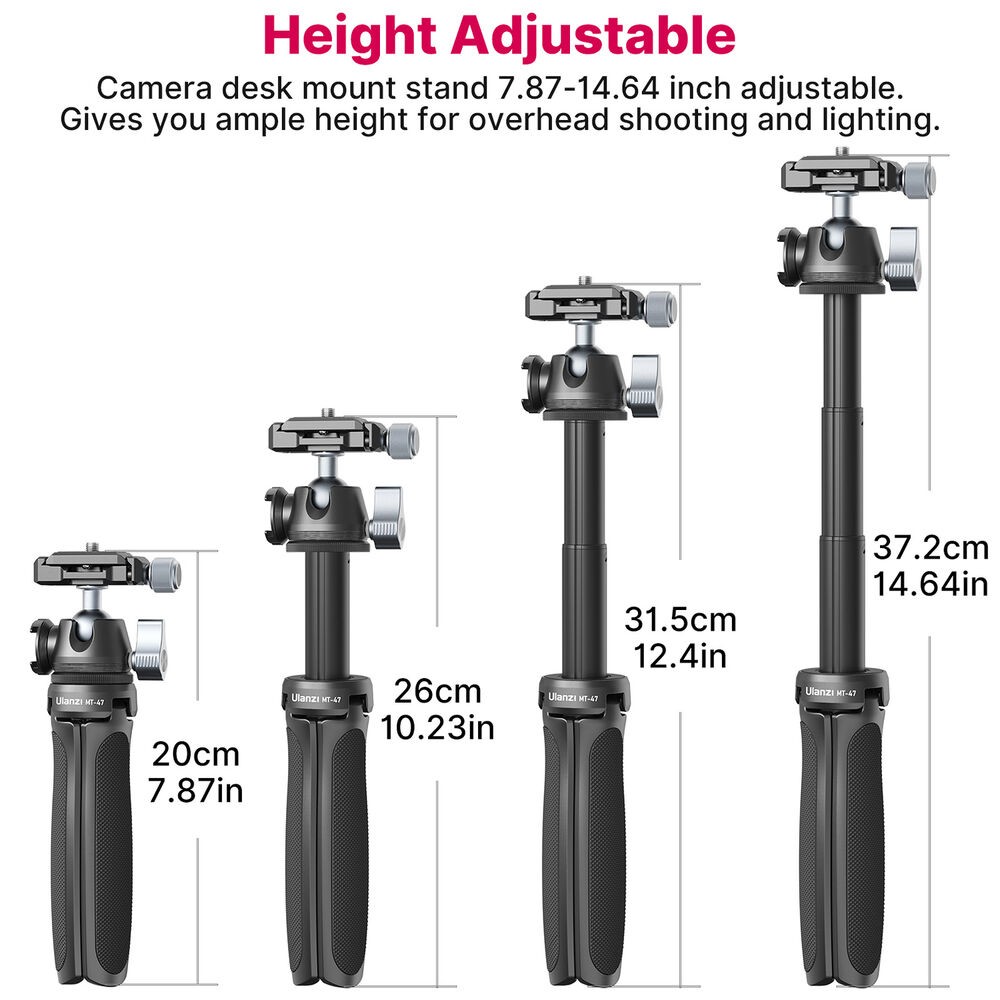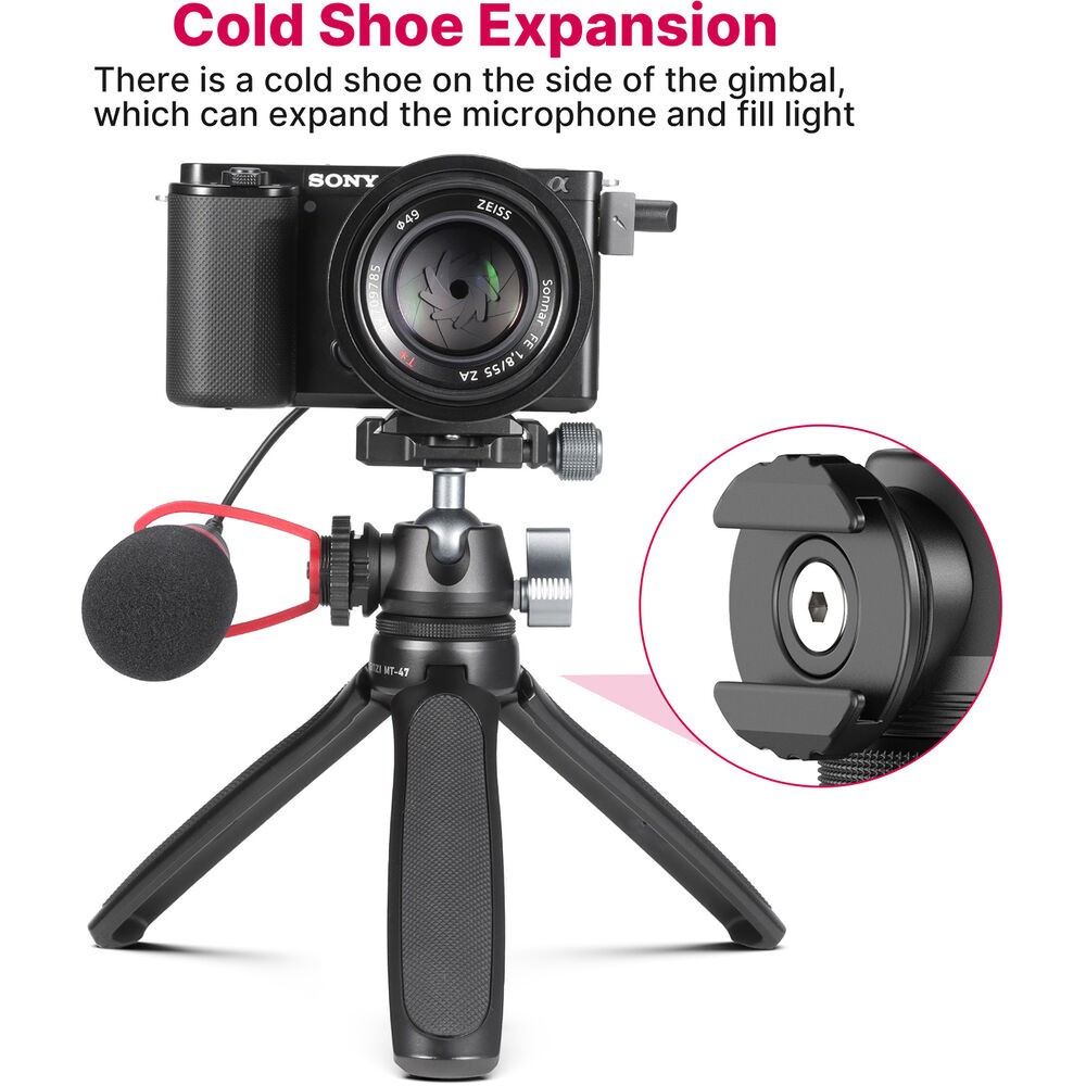 Mini stolný statív Ulanzi MT-47 je kompaktný, celokovový statív určený pre tvorcov, ktorí potrebujú rýchle nastavenie, prenosnosť a profesionálne rýchle uvoľnenie. Vďaka tenkej guľovej hlave typu Arca-Swiss s rýchlym uvoľnením, otočnej studenej pätici a skladacej konštrukcii, ktorá slúži aj ako rukoväť fotoaparátu alebo selfie tyč, je ideálny na vlogovanie, streamovanie a fotografovanie na cestách.