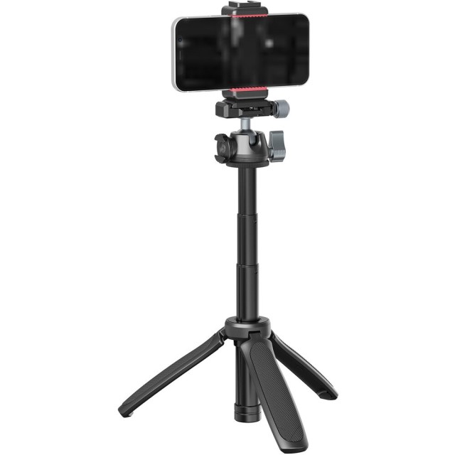 Nohy statívu sa otvárajú, aby poskytovali stabilnú oporu na stole, a sú vybavené gumovými koncovkami, ktoré zlepšujú priľnavosť a chránia povrchy. Keď sú nohy zložené, tvoria ergonomickú rukoväť s protišmykovou povrchovou úpravou, vďaka čomu sa MT-47 dá pohodlne používať ako rukoväť na vlogovanie alebo selfie tyč. S maximálnou pracovnou výškou 37,2 cm je ideálny pre stolové nastavenia, zábery z nízkeho uhla alebo fotografovanie z ruky.