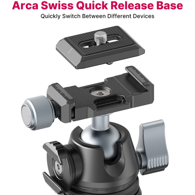 Integrovaná guľová hlava umožňuje plynulé panoramatické otáčanie o 360° a vertikálny náklon o 90°, čo umožňuje rýchly prechod medzi orientáciou na šírku a na výšku. Jediná aretačná páka umožňuje rýchle a intuitívne nastavenie. Výnimočnou vlastnosťou je tenká rýchloupínacia doska typu Arca, ktorá umožňuje rýchle upevnenie a odstránenie fotoaparátu bez použitia náradia. Okrem toho otočný držiak na studené pätice umožňuje pripojiť príslušenstvo, ako sú mikrofóny, LED svetlá alebo monitory, a vytvoriť tak kompaktné profesionálne fotografické zariadenie.