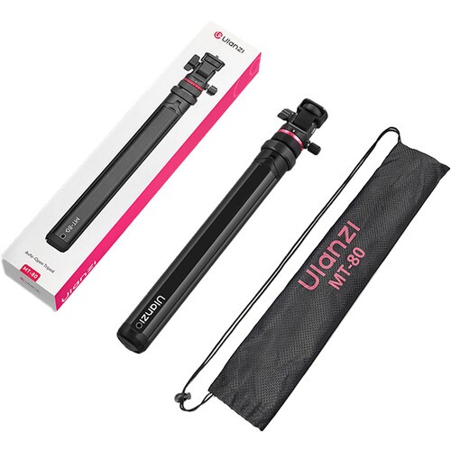 Stativ Ulanzi MT-80 Auto-Open je ľahký, prenosný stativ s automaticky otváracími nohami, ktorý unesie až 5 kg a dá sa vysunúť do výšky 2,1 m. Je vhodný na profesionálne fotografovanie, natáčanie videa a osvetľovanie. Vďaka 2-smerovej otočnej/naklápacej hlave, zosilnenej širokej základni a otvorom na kolíky je stabilný aj na nerovnom teréne alebo za veterných podmienok.
